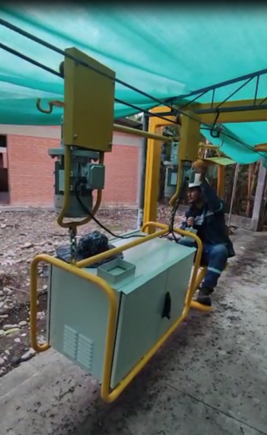 Se implementó una solución integral EPC / llave en mano para el sistema de transporte aéreo, integrando ingeniería, diseño estructural, provisión de componentes mecánicos y sistema de control. La solución optimizó el transporte interno de materiales, reduciendo tiempos de traslado gracias a una velocidad de operación de hasta 1,5 km/h, mejorando la eficiencia del proceso productivo. El sistema incorpora control por joystick, de manejo sencillo y resistente a condiciones climáticas, y una estación de recarga que asegura disponibilidad operativa diaria, reduciendo esfuerzo físico, mejorando la seguridad y garantizando continuidad operativa.